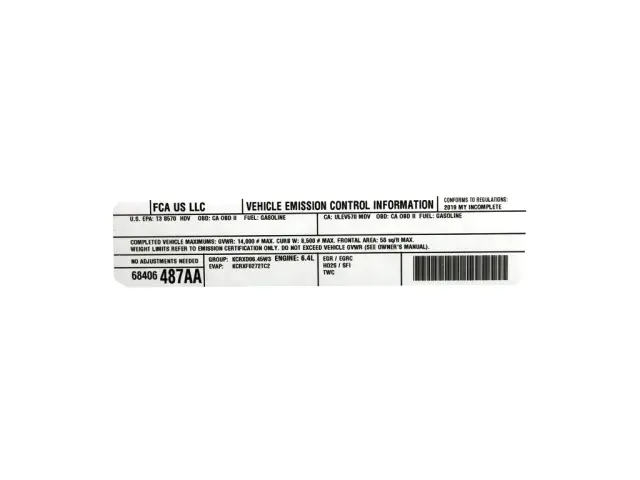Vehicle Emission Control Information Label - Mopar (68406487AA)